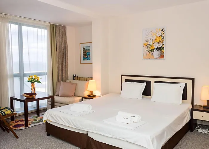 - ❓Unde este amplasat apartamentul pe malul mării?Apartamentul pe malul mării situată în cartierul Litoralul Golden Sands al orașului.